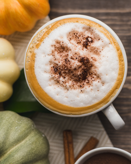 - In a small saucepan, whisk milk, pumpkin purée, cinnamon, ginger, nutmeg, clove, and vanilla.