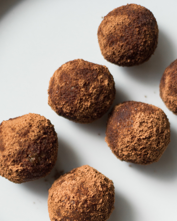 - Scoop 1 Tbsp portions and roll into balls. If they’re a touch sticky, chill a few more minutes and try again or roll in cacao!